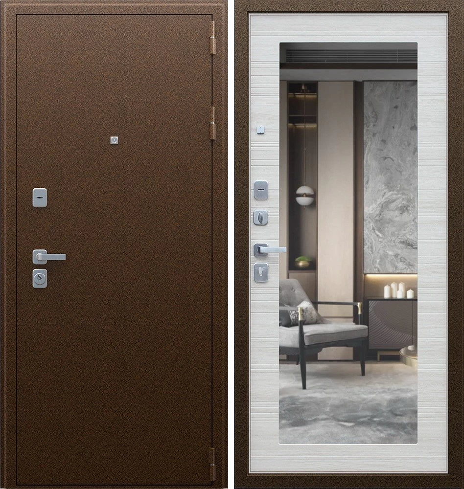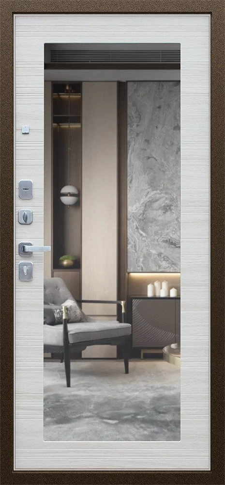 Надежная входная Дверь Спартак с зеркалом Акация Светлая Поперечная премиум класса по цене 36 247 руб. Большая толщина стали защитит от проникновения в ваш дом, квартиру или коттедж. Используется очень качественная фурнитура: замки, цилиндры, ручки, защелки. Покрытие и отделка двери изготовлено под внимательным контролем производителя. Дверь имеет долгий срок службы и гарантию.