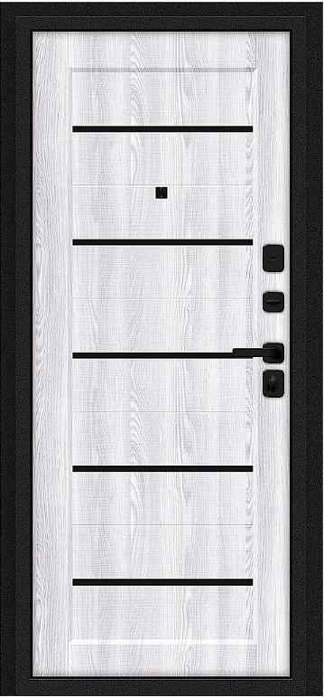 Надежная входная Дверь Браво Борн/SBlack Букле черное/Riviera Ice премиум класса по цене 31 247 руб. Большая толщина стали защитит от проникновения в ваш дом, квартиру или коттедж. Используется очень качественная фурнитура: замки, цилиндры, ручки, защелки. Покрытие и отделка двери изготовлено под внимательным контролем производителя. Дверь имеет долгий срок службы и гарантию.