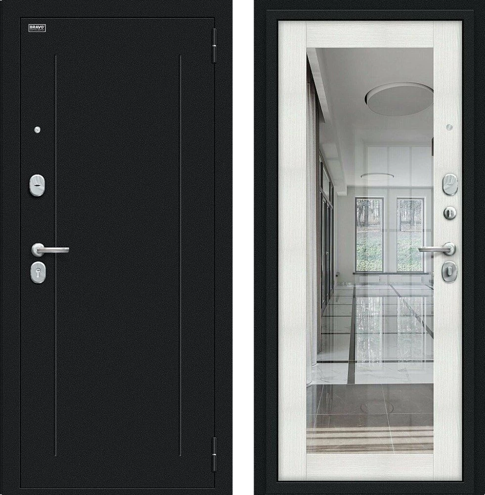 Надежная входная Дверь Браво Флэш Букле черное/Bianco Veralinga премиум класса по цене 32 697 руб. Большая толщина стали защитит от проникновения в ваш дом, квартиру или коттедж. Используется очень качественная фурнитура: замки, цилиндры, ручки, защелки. Покрытие и отделка двери изготовлено под внимательным контролем производителя. Дверь имеет долгий срок службы и гарантию.