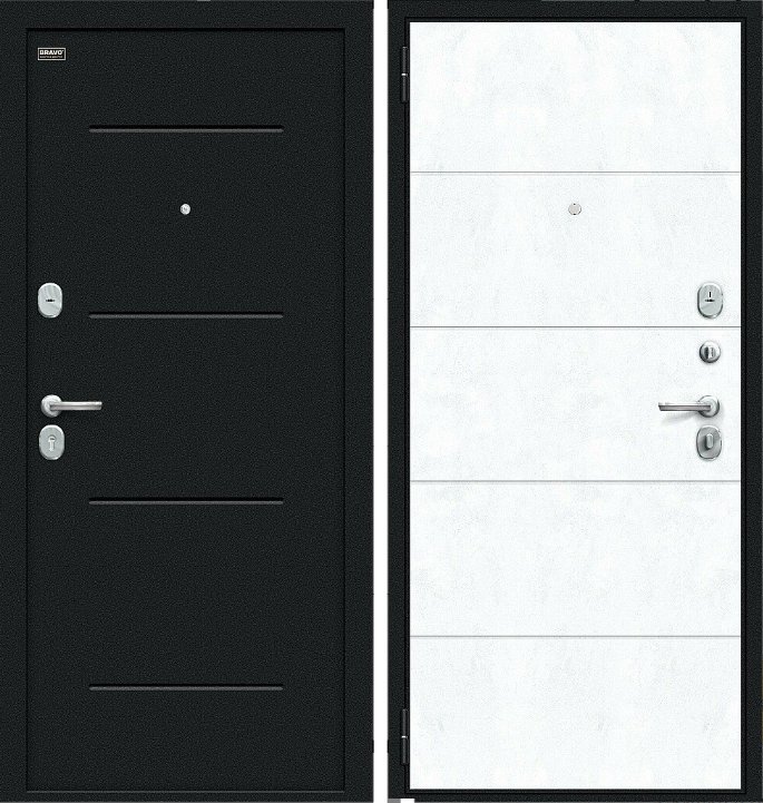 Надежная входная Дверь Браво Граффити-1 Инсайд Букле черное/Snow Art премиум класса по цене 30 947 руб. Большая толщина стали защитит от проникновения в ваш дом, квартиру или коттедж. Используется очень качественная фурнитура: замки, цилиндры, ручки, защелки. Покрытие и отделка двери изготовлено под внимательным контролем производителя. Дверь имеет долгий срок службы и гарантию.