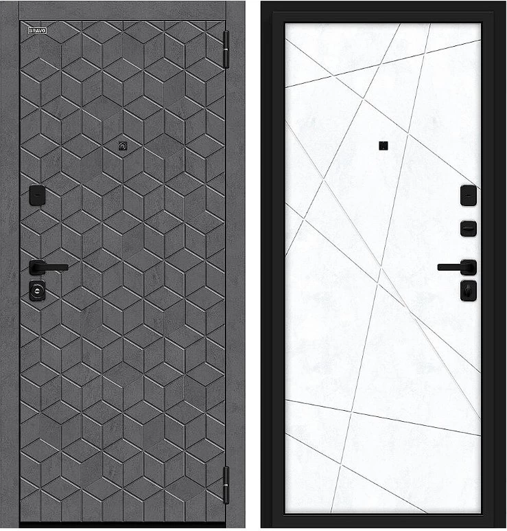 Надежная входная Дверь Браво Кьюб/SBlack Slate Art/Snow Art премиум класса по цене 39 097 руб. Большая толщина стали защитит от проникновения в ваш дом, квартиру или коттедж. Используется очень качественная фурнитура: замки, цилиндры, ручки, защелки. Покрытие и отделка двери изготовлено под внимательным контролем производителя. Дверь имеет долгий срок службы и гарантию.