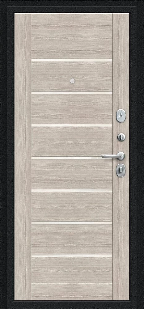 Надежная входная Дверь Браво Техно Букле черное/Cappuccino Veralinga премиум класса по цене 31 097 руб. Большая толщина стали защитит от проникновения в ваш дом, квартиру или коттедж. Используется очень качественная фурнитура: замки, цилиндры, ручки, защелки. Покрытие и отделка двери изготовлено под внимательным контролем производителя. Дверь имеет долгий срок службы и гарантию.