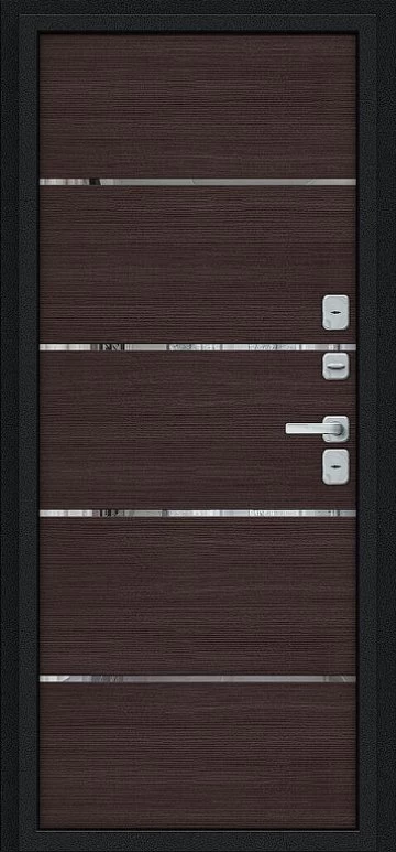 Надежная входная Дверь Браво Thermo Лайн/BChrome Букле черное/Wenge Melinga премиум класса по цене 45 997 руб. Большая толщина стали защитит от проникновения в ваш дом, квартиру или коттедж. Используется очень качественная фурнитура: замки, цилиндры, ручки, защелки. Покрытие и отделка двери изготовлено под внимательным контролем производителя. Дверь имеет долгий срок службы и гарантию.