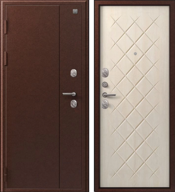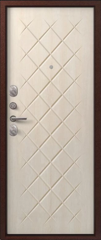 Надежная входная Дверь V-02 медь антик - седой дуб премиум класса по цене 36 597 руб. Большая толщина стали защитит от проникновения в ваш дом, квартиру или коттедж. Используется очень качественная фурнитура: замки, цилиндры, ручки, защелки. Покрытие и отделка двери изготовлено под внимательным контролем производителя. Дверь имеет долгий срок службы и гарантию.